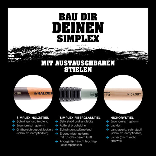 Die Halder Simplex Schonhämmer bieten für jede Aufgabe die perfekte Lösung. Mit ihrem modularen Aufbau, austauschbaren Schlagköpfen und verschiedenen Gehäuse- und Stieloptionen sind sie wahre Anpassungstalente. Ob empfindliche Oberflächen, hartnäckige Materialien oder präzise Ausrichtungen – die Simplex-Serie hat den richtigen Hammer für Sie.